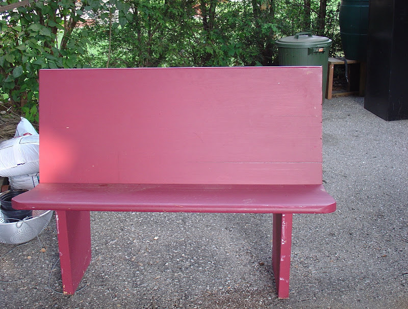 He brought home this wooden bench that someone hand-made and then very foolishly painted magenta. Ooooooog! It's an easy fix with a bucket of white. I can already see it in my shop, with some vintage cushions and a stack of books...