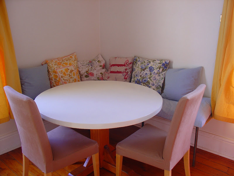 After building The World's Easiest Sofa, I still had the featherbed to find a new home for. We needed seating in the dining room, and I've always loved banquettes (I think because I love eating in restaurants so much), so it seemed a perfect match.