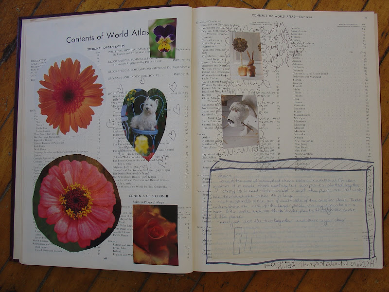 I bought it for the maps, which I cut out to use in various projects. This left me with the dilemma of what to do with the rest of it. You can't send a defaced book back to the auction and I am genetically incapable of throwing out a book. So this was the perfect solution. I have a place to store all my clippings for years to come and an out-of-date atlas gets a second life.