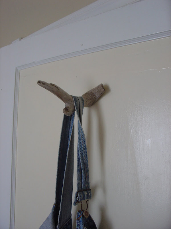But here's how I make use of old packaging and stray twigs. I decide I need something first. As in: I need a hook for the back of the door. What can I find that will do? Rather than: I might need this someday, for something, so I'll tuck it away here, just in case.