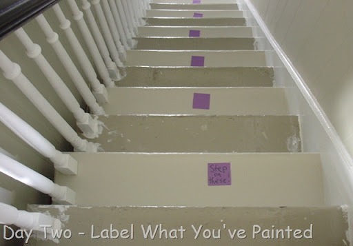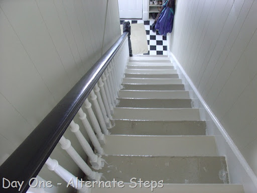 Alan very kindly took over the painting of the stairs (I thank you. My back thanks you.). It's time-consuming, but fairly straightforward.